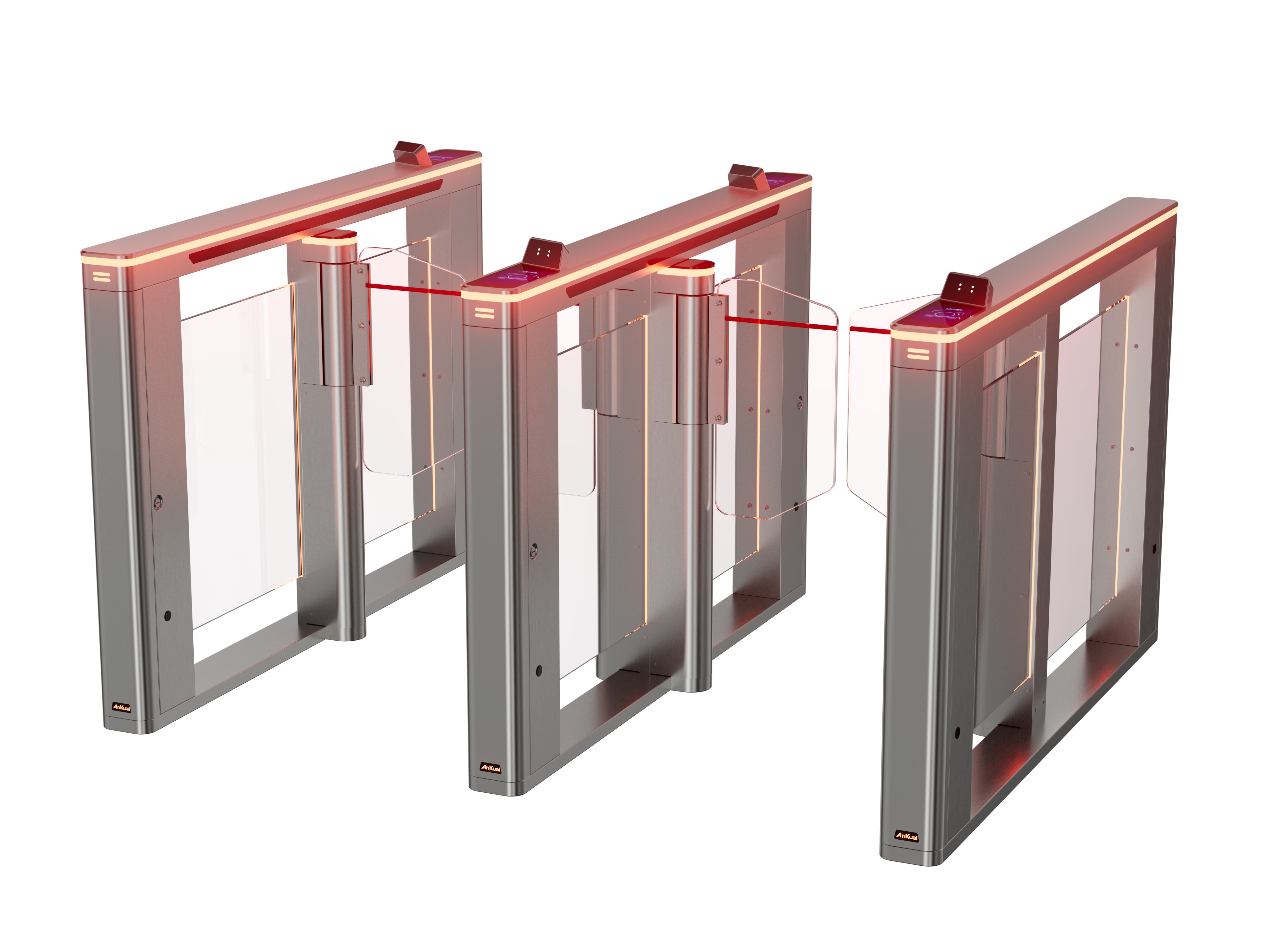 The speed gate turnstile is designed to control pedestrians entering or exiting restricted areas, usually used for high pedestrian traffic flow in both directions. It consists of two elliptical units with door wings that swing to allow passage to authorized users. Moreover, the speed gate body is made from brushed stainless steel which creates a seamless and elegant access point to blend into most indoor environments.